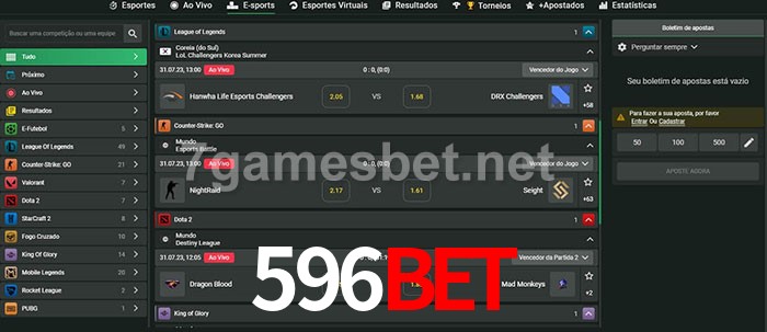 O 596bet oferece uma grande seleção de opções de apostas em e-sports com probabilidades competitivas